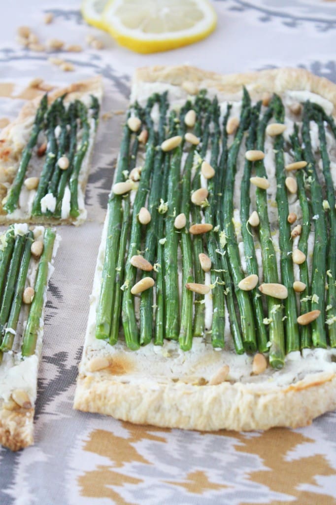 I’ve made an asparagus puff pastry tart before and it was so incredibly delicious! Yours is absolutely beautiful, especially with the pine nut addition.