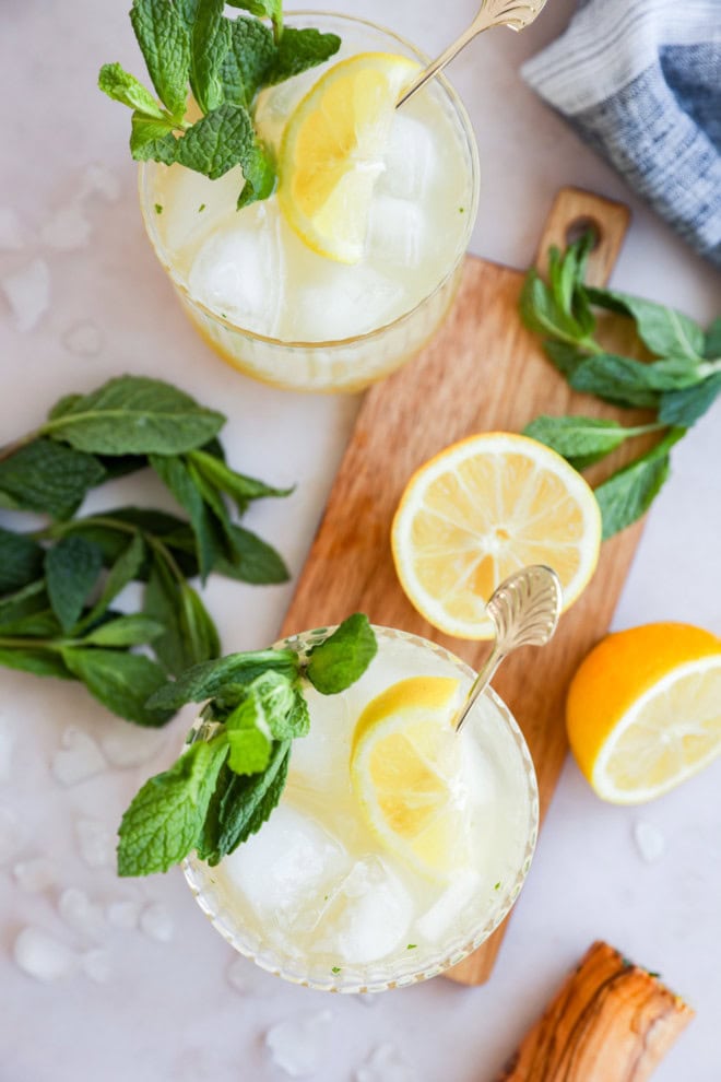 - Garnish with mint sprig and a lemon wedge or wheel.