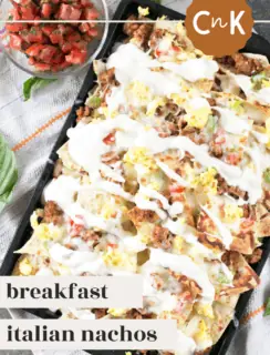 Breakfast Italian Nachos are piled high with everything you’d want out of breakfast and nachos, but Italian-style. The alfredo cheese sauce on top alone will have you coming back for seconds!