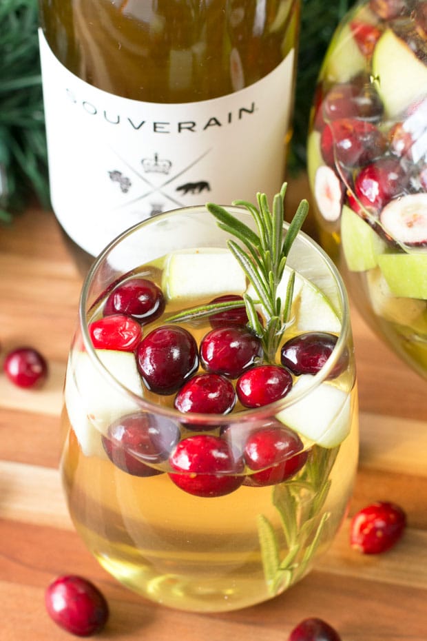 Wow. I’ve made a few different similar sangrias in search of finding the perfect one and this is IT! I used 1 bottle of Riesling and 1 bottle of pinot grigio. I made it about 6 hrs ahead of time and added sugar covered rosemary sprigs to each glass. Can’t wait to make it again!