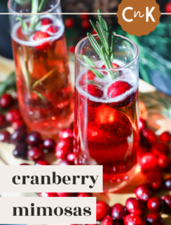 There’s something about cranberries that just screams holiday season to me, so from Thanksgiving straight through the New Year, I am busting out this cranberry mimosa whenever I can.