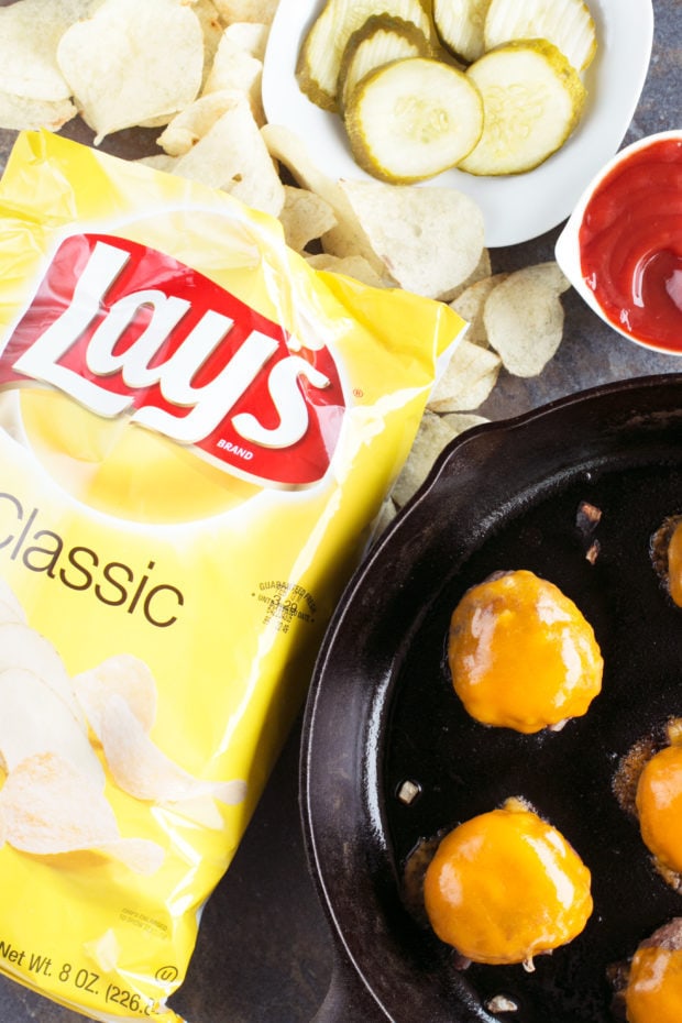 Then I asked myself, what’s more all American than diving face first into a platter of beef sliders as you cheer on your favorite football team on game day? Serving those burgers up with a side of LAY’S® Classic Potato Chips.
