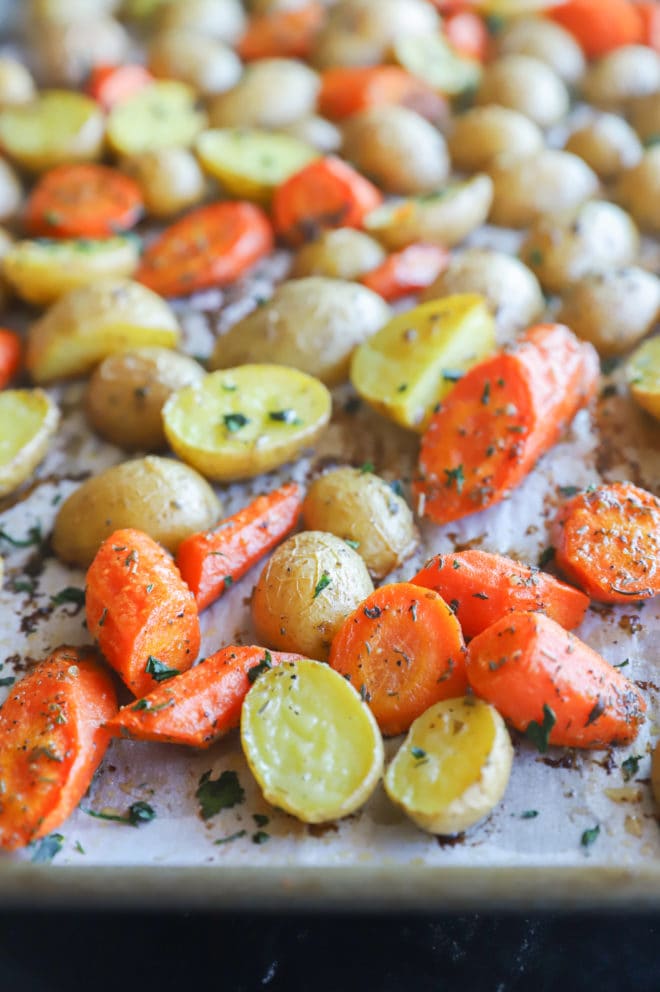 Roasted carrots and potatoes seem to go with practically everything, am I right? You can serve them up on a weeknight for an easy side dish, or you can make them for a special occasion like Thanksgiving or Christmas! Need some inspiration for your meal? Here are some mains to consider pairing with these roasted vegetables:
