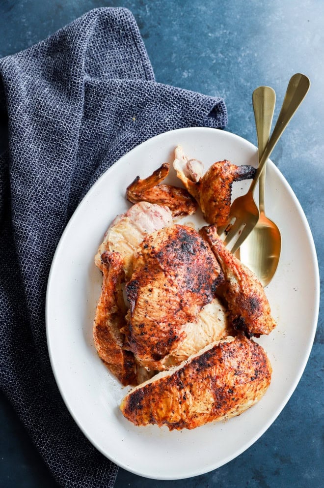 Make sure that you do not overcook the chicken! Once the chicken reaches about 163˚F internally, remove it and let it rest for at least 10 minutes. This will not only allow the chicken to come to temperature, it also helps give the juices time to redistribute. That’s why you should also wait to slice the chicken – it really does help keep it nice and moist!
