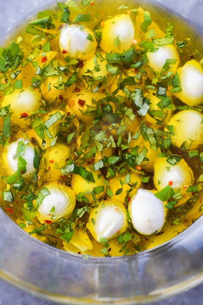These marinated mozzarella balls are the perfect easy appetizer recipe because they are so simple to make and they are loaded with fresh herbaceous flavors. They look fancier than they are, therefore impressing your guests without you having to do a lot of work to make them.