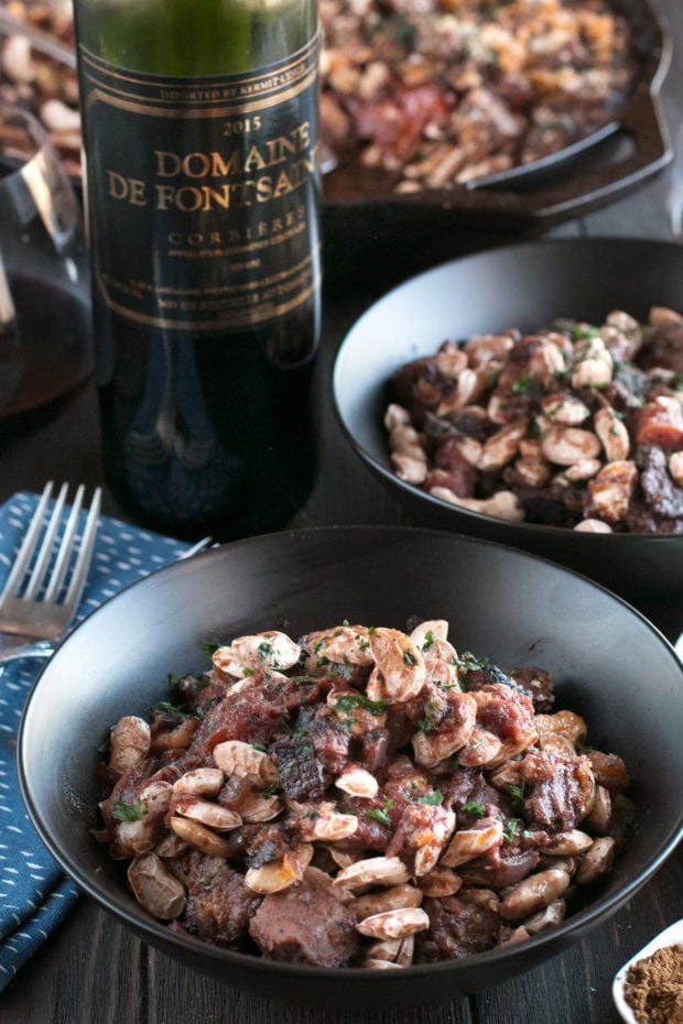 Languedoc offers an amazing selection of high-quality wines with exceptional value and character. There’s such a wide variety, just like the different soil and climate types that make up this fabulous region. That makes it the perfect place to pull wines to both add to this cassoulet recipe and to pair with it as you eat it. The wines you find in this region, such as the Chateau Coupe Roses la Bastide AOC Minervois wine I used in this recipe, are generally blends of Syrah, Grenache, Mourvedre and/or Carignan, but don’t feel intimidated even if you don’t know all of these types! Even if you can’t find the specific wines you see in this post, you can rest assured that a blend of any of these is pure deliciousness.