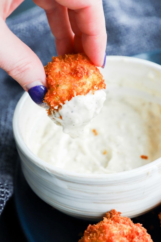 You can serve these potato cheese balls with any of your favorite dipping sauces! This could be ketchup, aioli (like this roasted garlic aioli, spicy chipotle aioli, or quick garlic aioli!), mustard, queso, or any of your favorite sauces.