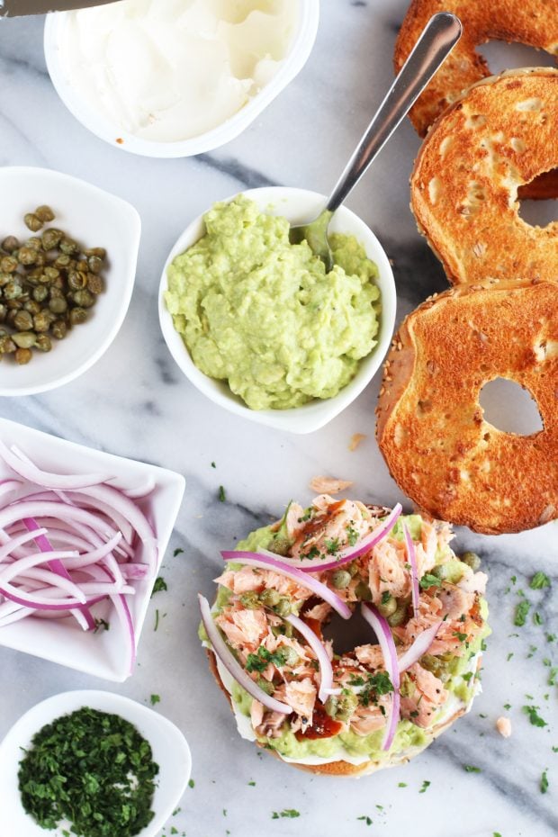 Smoked Salmon Avocado Cream Cheese Bagels