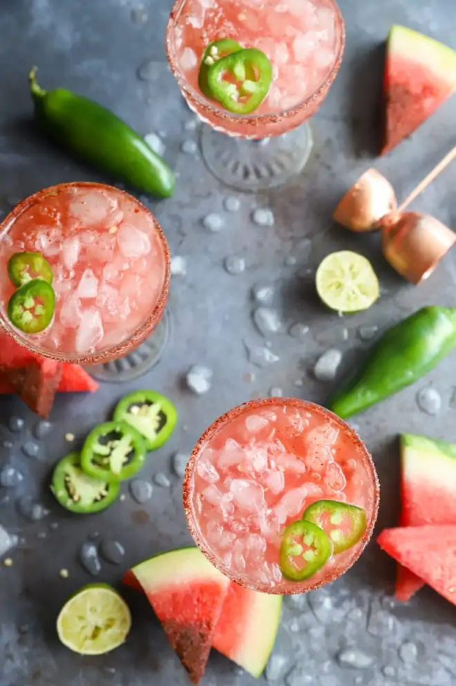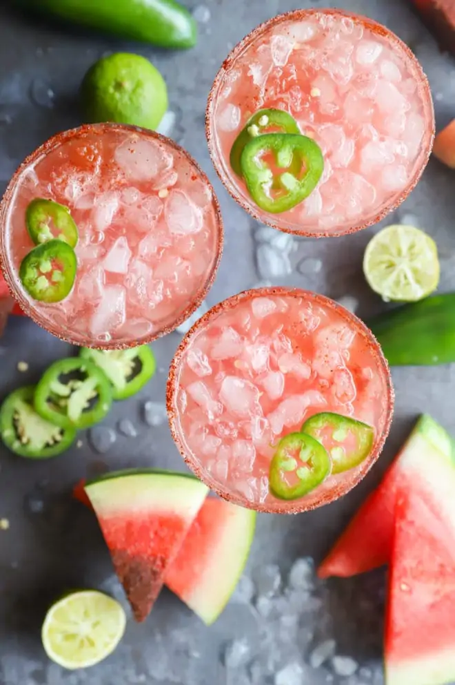 In every sip of this summer margarita, you get a big dose of watermelon fruitiness with a punch of tequila and a little touch of heat from some jalapeño.