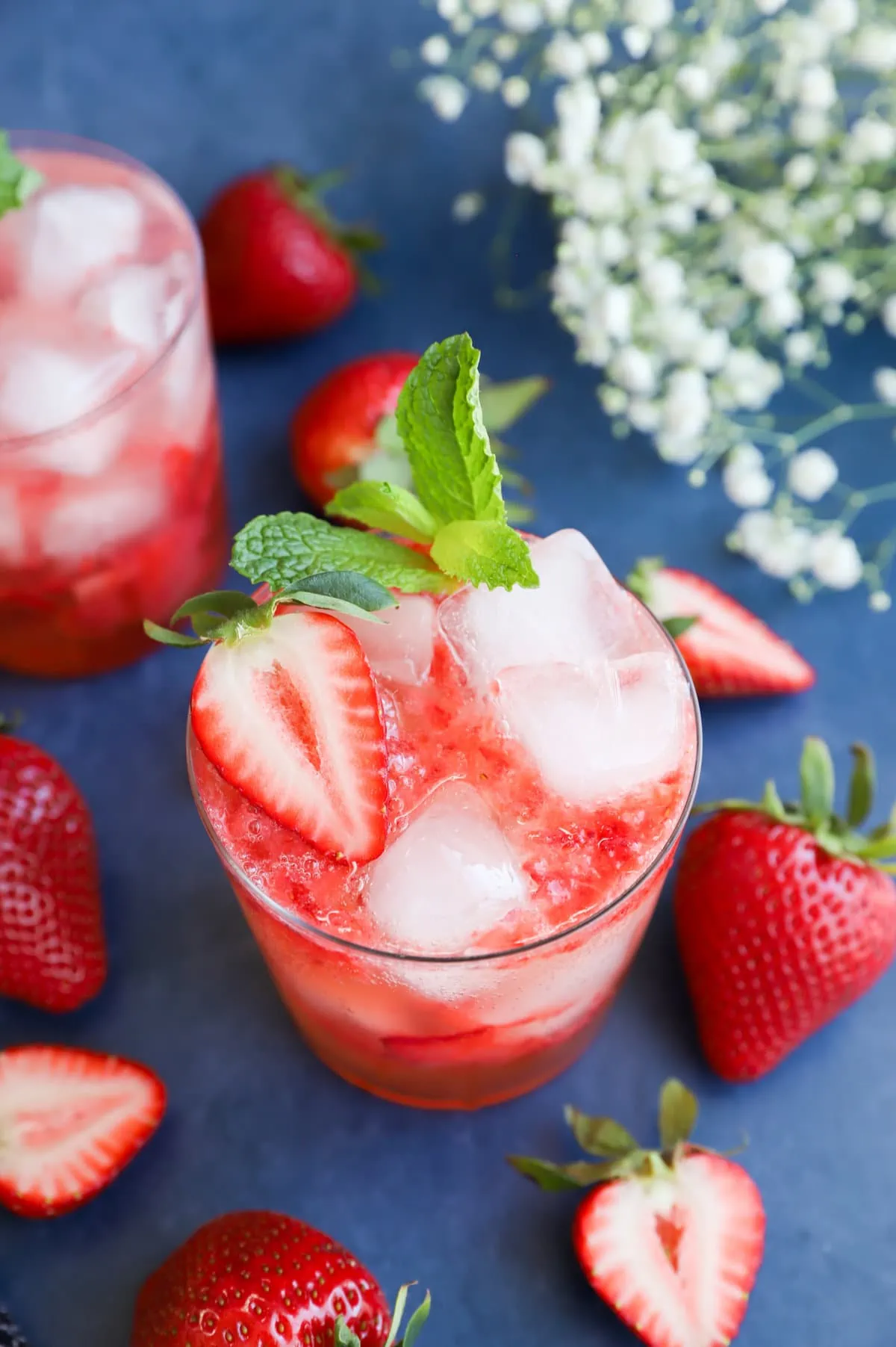 You can garnish with a full strawberry like you see here! Another option is adding strawberry slices to the cocktail to float around. We’ve done both and they look great!
