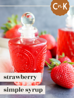 The syrup actually can store for 2 weeks so it’s a fantastic recipe to make before a party or just to steadily use over a couple of weeks whenever you are craving some strawberry flavor in your drinks or desserts. It has just the right amount of sweetness!