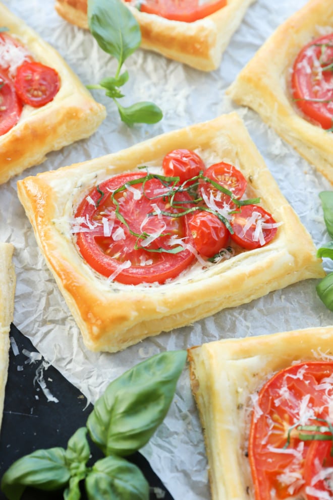 - The vibrant red tomatoes paired with a golden-brown crust and green basil make them absolutely stunning. Therefore they are the ideal appetizer for a summer party, but they can also be served as a lunch when paired with a refreshing salad.