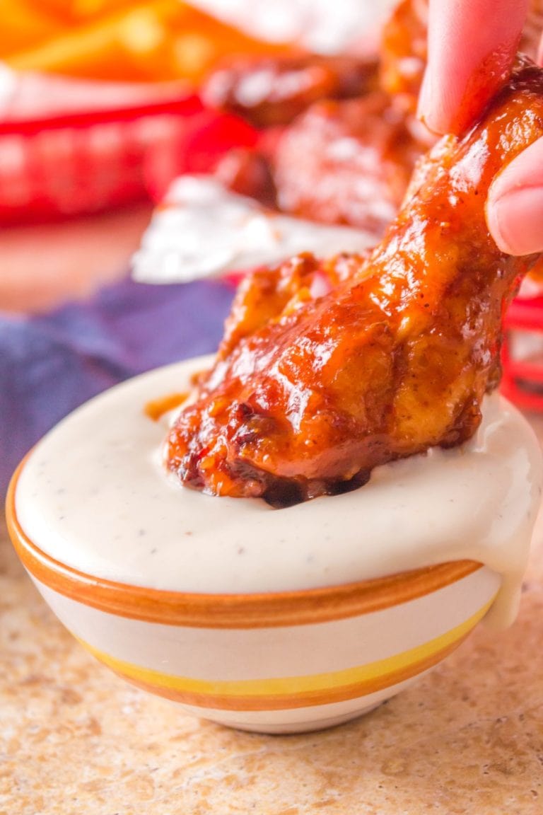 Honey BBQ Grilled Chicken Wings are the easiest way to make your favorite crispy and saucy snack! These wings are perfect for sharing and dipping in an easy, creamy dip.