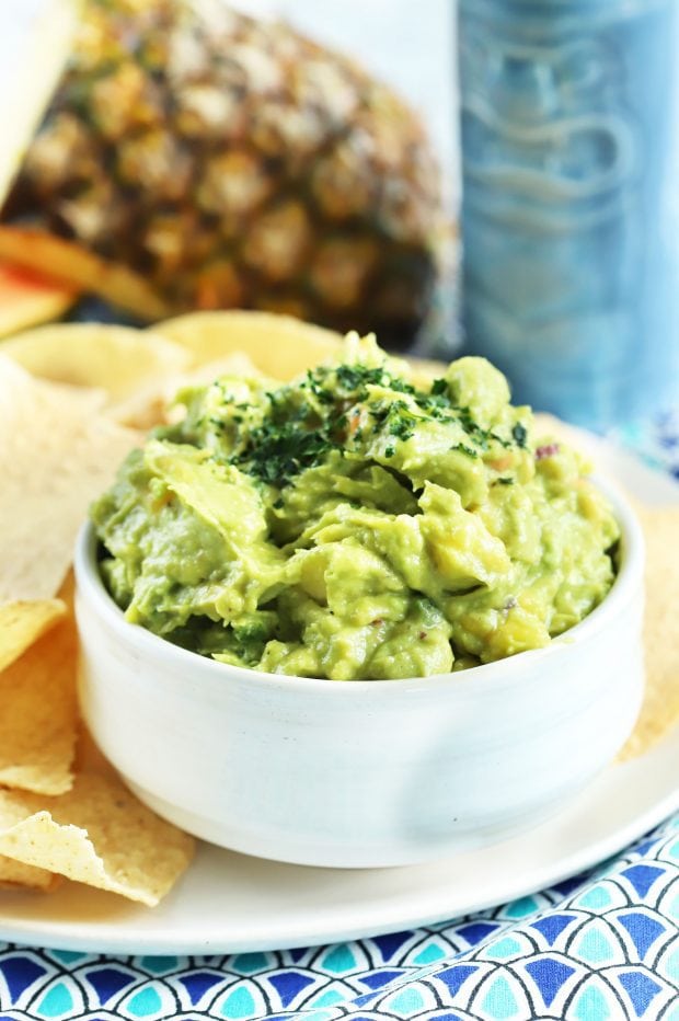 With this new twist on guacamole, I am taking you to the tropics. When I was in the Caribbean last year, I loved savoring all the tropical drinks while on the cruise. I was eating pineapple, mango, and any other fruit I could get my hands on for breakfast.