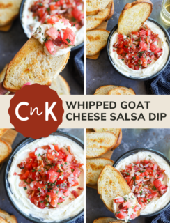 Finally, if you make this whipped goat cheese salsa dip, please be sure to give this recipe a rating or leave a comment! I love to hear when you all make recipes, and I do take the time to respond to every single comment. Feel free to drop questions below too, if you have them!