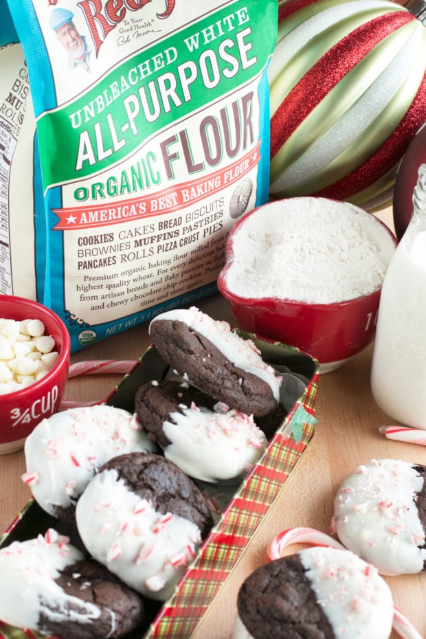White Chocolate Dipped Dark Chocolate Peppermint Cookies are soft, chewy and dipped in white chocolate with just the right zing of peppermint to get you in the holiday mood. Trust me when I say, there won’t be any left for Santa to gobble up!